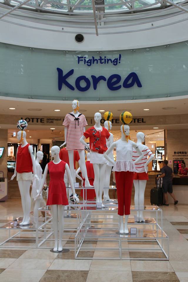 你以为“购物の日”就这么结束了!才到哪儿啊!下一站,乐天百货!想想女人真是强悍,逛上一整天也不会累!这个百货店装修真是豪华,有的店连照相都不让呢!我俩在这儿也是默默地放下照相机,静静的购物啦!买了几个心仪的衣服,还有钱包也get!说是不累,回到旅店也是累的不轻……一回到旅店又是瘫倒!