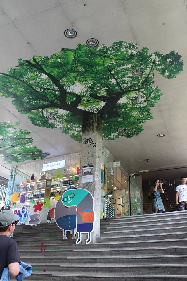进入里面,到处都是浓浓夏日风情的壁画呢~你看到那个树的壁画了吧?猛一看我还以为是真的树呢~仔细看才发现是画在天花板上的画儿!!是不是超有创意!