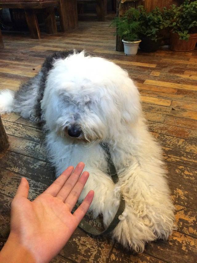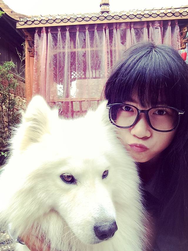 第二天起床头都疼。。出去吃饭前碰到楼下的萨摩 好大只好白 可是他好高傲不怎么理我 还掉了我一身毛
