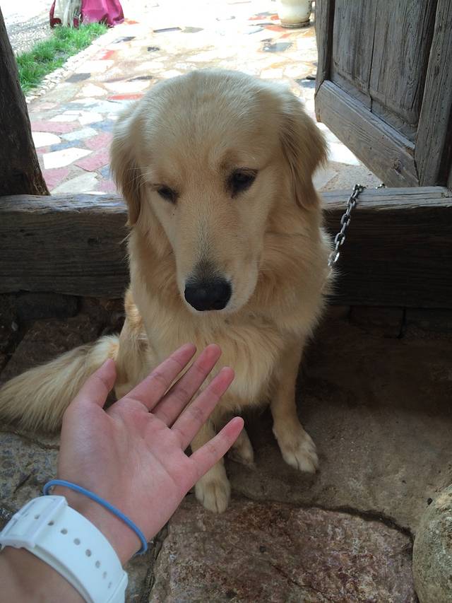 别的旅社门口养的金毛 超级乖 会主动亲近人