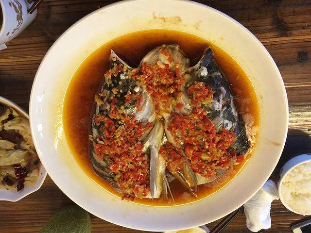 临走前的午饭 最近迷上吃鱼头 就进了一家湘菜馆 美团有劵的 说是王菲最喜欢的店= ……= 其实我只是想试试鱼头 这个好像八九十 当时一上我们的共同反应是这么大吃得完么 然而吃了一口后我就打脸了 没错 我抱着我走之后吃不到这么好吃的鱼头的心情和朋友干掉了它= =途中没看手机没交流 说句老实话 我真的觉得很好吃。。。吃完才觉得舌头有点烫到了 好像叫湘爱主题餐厅 靠近一个古门 也有歌手驻唱 在准备走的这一天吃到这么好吃的鱼头不知该高兴还是不舍
