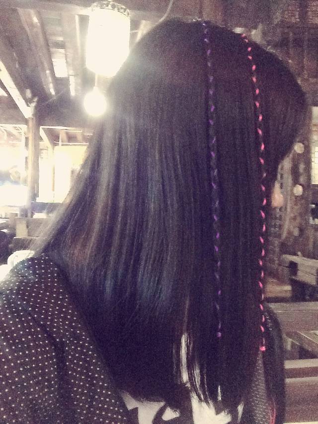 吃饭时以为纳西族的老奶奶来问要不要辫彩辫,推脱了几次还是决定照顾一下奶奶的生意,每人辫了三条。古城里到处都能看到辫彩辫的,一般是10块钱6条,你可以还价,因为成本很低。