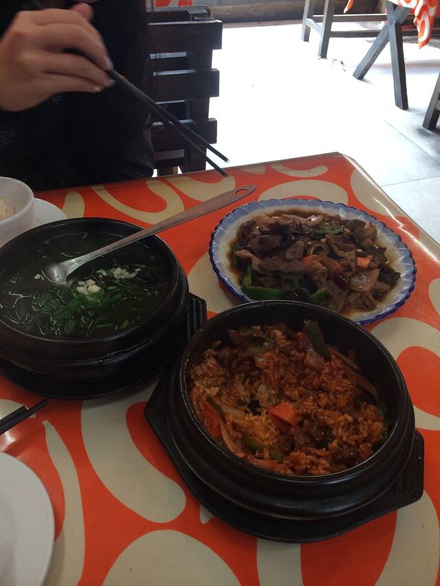 午饭 在一家东北菜馆解决的 价格不贵 我是冲着海带汤去的 还点了拌饭 挺好吃的 吃饭期间 老板说千古情值得一看,刚好朋友也想看 而饭店对面就是旅行社 我们就顺便定了雪山的套票 给的价钱比外面便宜