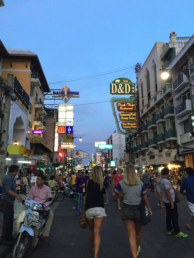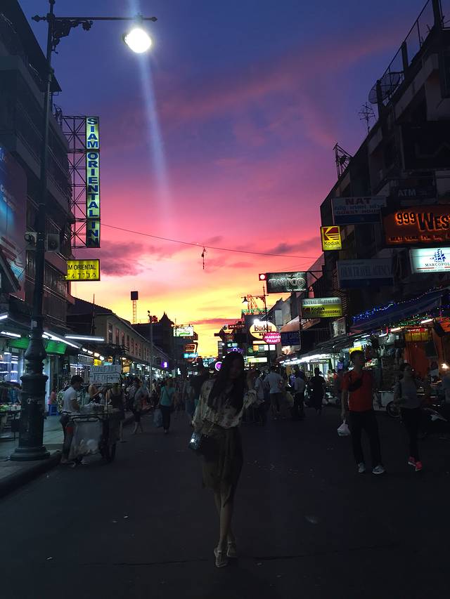 在机场换钱、找住的地方、考山路的夜市、到7-11找吃的!