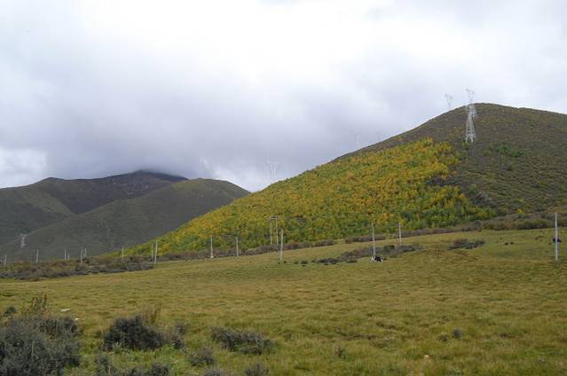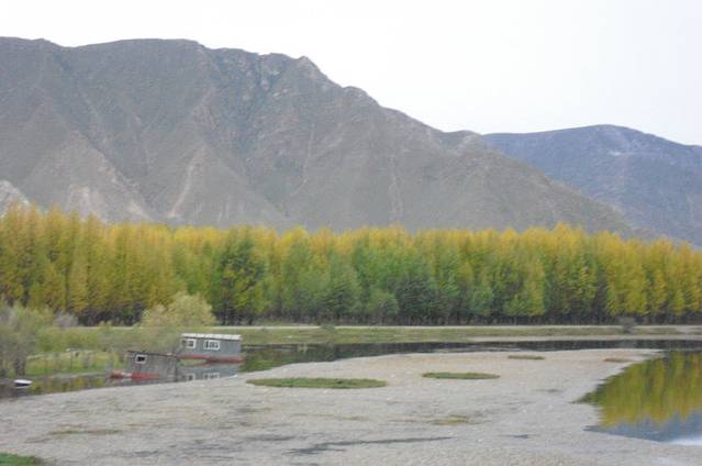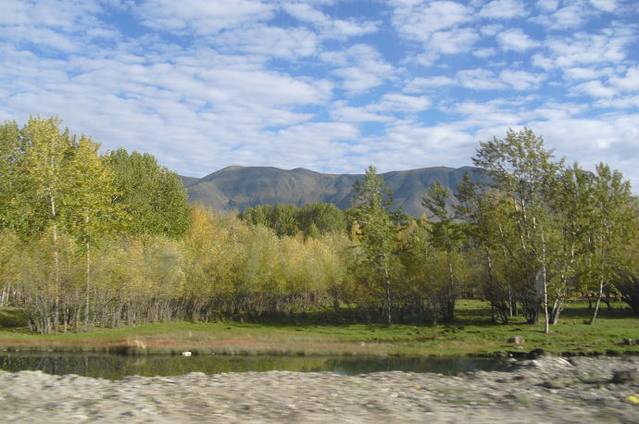 现在已经进入了秋天,河边和山上的青杨林开始颜色变成黄色。煞时好看起来。