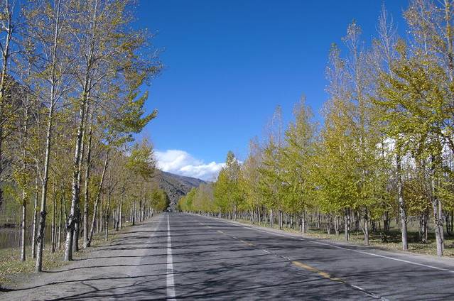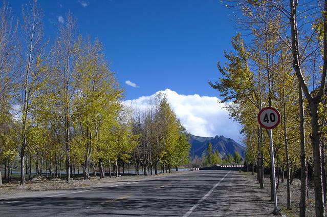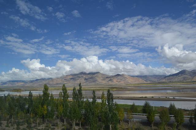 今天的天气不错,蓝天白云,汽车平均40公里,司机严格执行。一路上延着尼洋河走。风光格外秀丽。