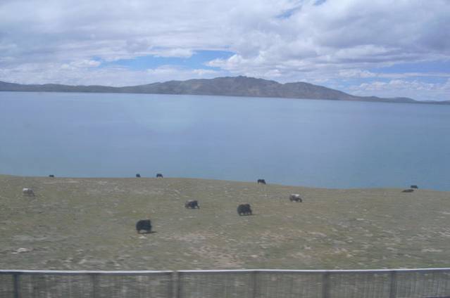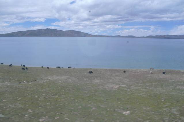 随着走过高高的唐古拉山,雪没有融化。又慢慢走过青海湖,湖边的牦牛在悠闲地吃草。