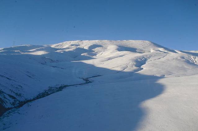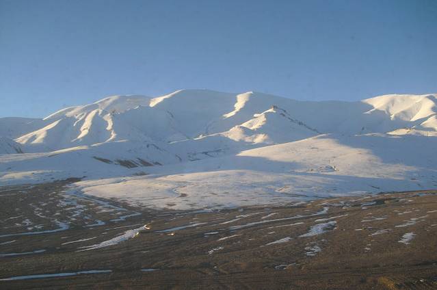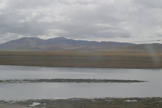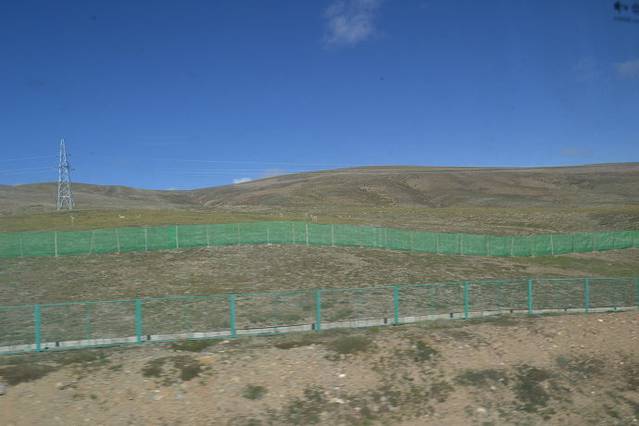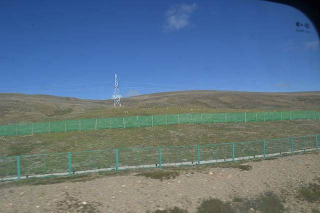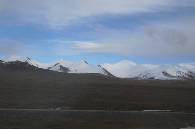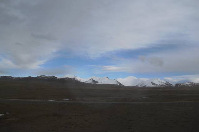 由于隔着火车车窗玻璃,拍出来的效果比较差。这里是大名鼎鼎的昆仑山口。大约海拔5000米。你看白雪皑皑,终年不化。