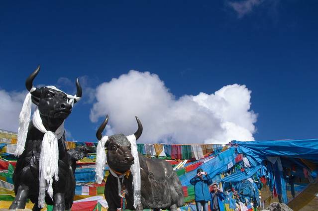接着继续上路。时间不长就到了海拔5000多米的米拉山口。一下车,就感觉天气比较凉。