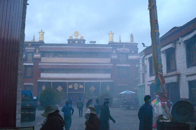 今天是最后1天,中午11点的火车离开拉萨。我觉得有些地方我必须要去,否则以后一定要后悔。由于西藏的天亮的比较晚,早上6点半,我出门。马路上黑漆漆的,天还没有亮。只有路灯在风中摇絏。我住宿的酒店离开木如寺不远,半个小时找到了。不要门票。木如寺,也叫西藏佛教印经院。不大但很有名。它和仓姑寺齐名,但仓姑寺因为是觉姆寺【尼姑庵】。所以要门票35元。2座寺庙离开不远。