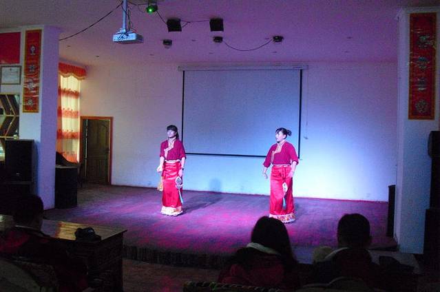 第2天一早,6点出发。不到8点到了一个叫章巴村的小村子。大家上厕所后,一看有西藏村民在表演,看看吧。
