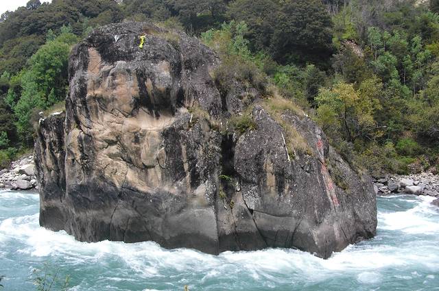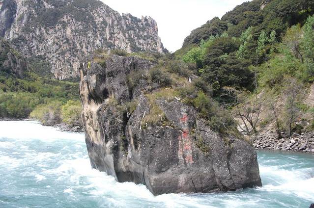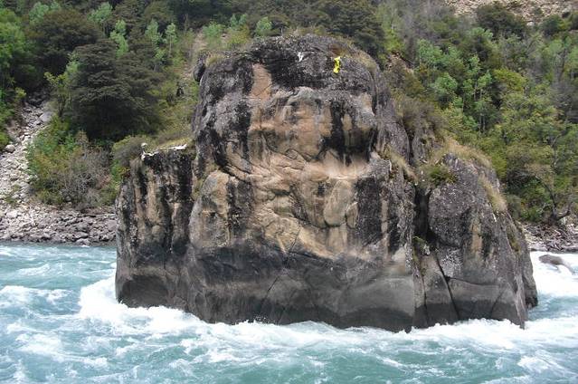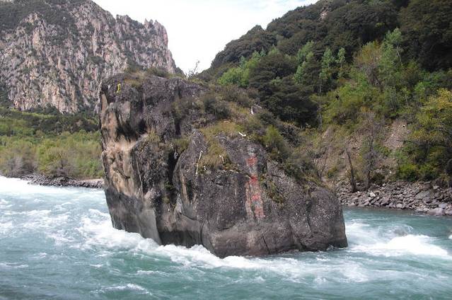 “中流砥柱 ”位于尼洋河中游,其所处在的位置山势险峻,陡象横生。石柱上长着一棵松树,并有多种植被装点,远处眺望,甚为壮观。因之奇特的造型和险要的位置,被当地人奉为神物,每逢黄道吉日来此烧香朝拜,以求万物生灵平安吉祥。