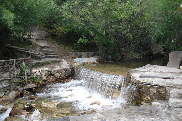 卡定沟瀑布景区,山势陡峭,山脚是阔叶树,山腰是阔叶、针叶混生林,而山顶则是针叶树种的天下。在山的主峰,一道瀑布倾泻而下,瀑布的左右两边,由岩石天然形成的观音、双面佛等肖像惟妙惟肖,让人不得不对造物者的鬼斧神工叹为观止。瀑布对面山峰上的“神鹰献宝”、“神龟驮宝”,又引出了一段神奇的传说。踏着一级级合抱粗圆木段铺成的台阶,登上观瀑台,更能体会“飞流直下三千尺”的诗意。山间的泉水清澈而甘洌。只是到了枯水季节水势就较小了。