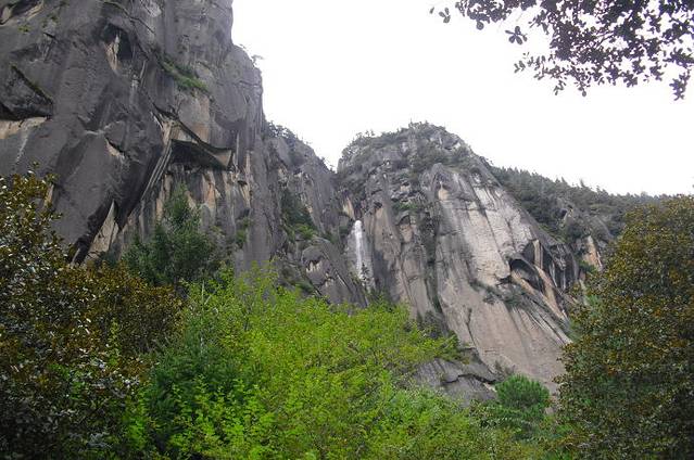 林芝卡定沟天佛瀑布位于西藏318国道拉萨至林芝段距八一镇24公里处,海拔2980米,地处雅鲁藏布江支流尼洋河畔,气候温湿宜人,雨水充沛,森林茂密夏季最高气温28℃冬季最低气温零下6℃,冬暖夏凉湿避暑度假的好地方。林芝卡定沟瀑布属花岗岩峡谷风貌,由于受印度洋暖湿气流的影响,峡谷两侧山高崖陡,叠嶂起伏,苍松巨柏遍布山崖。藤竹布满沟底,杜鹃等几十种野花飘香,左侧山崖200多米落差的瀑布由天而降,更为神奇的是瀑布水中天然形成的一尊大佛时隐时现,天佛瀑布由此而此得名。据说这是林芝地区藏族同胞的保护神,难怪大家对这尊佛像十分的敬仰。如果用望远镜看,还可以看到瀑布右上角有一个藏族美女的图案,惟妙惟肖的,这里面肯定有不少美妙的传说。卡定沟天佛瀑布在藏族人民的心目中有着非同一般的地位。