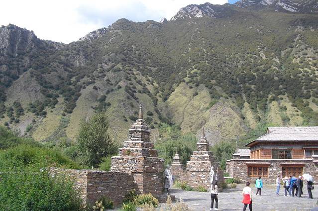 卡定沟又名嘎定沟,此处山势险要高耸入云,是典型的峡谷地貌,奇峰异石古树参天,落差近200米的瀑布飞流直下雄伟壮观,山崖天然形成的大佛、女神、观音、护法、如来佛祖、喇嘛颂经、神龟叫天、神鹰献宝、酥油灯,以及藏文“六字真言”佛字等;清新自然的天然氧吧将使您无限陶醉。