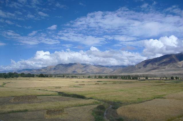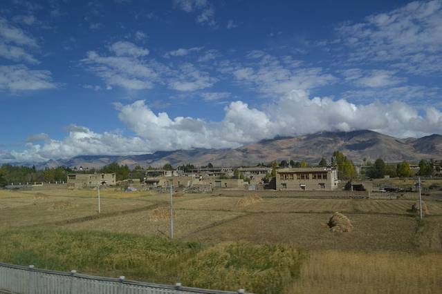 这是西藏普通农民的家。看看远处的大山,天上的朵朵白云,如同油画一般。