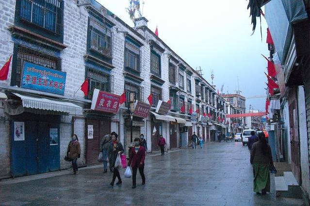 由于时间的关系,我不得不离开小昭寺。然后在小昭寺附近的小街道上。买了几个西藏大妈做的酥油饼,每个2元5角。带走火车上可以吃。一路上我狂奔如风,在林廓北路拍了张照片。