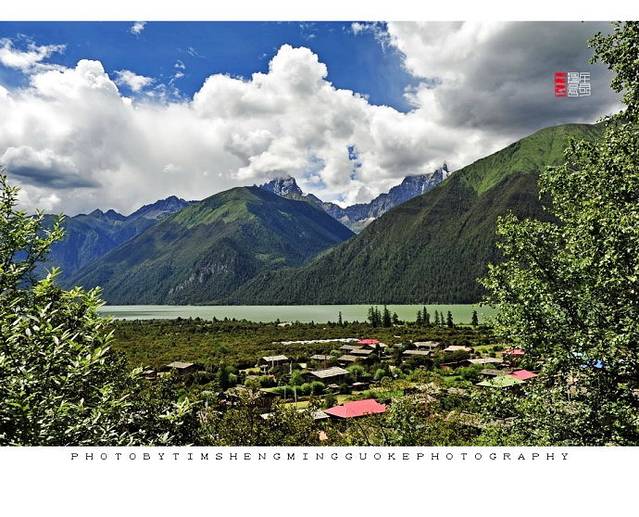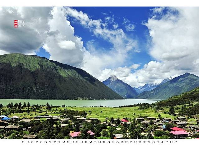 房舍错落,雪山逶迤,一湖如带