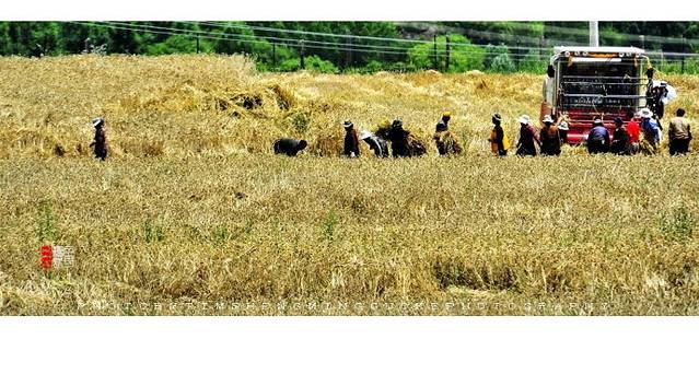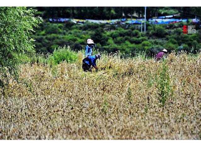 庄稼金黄铺原野,藏民挥镰忙收割