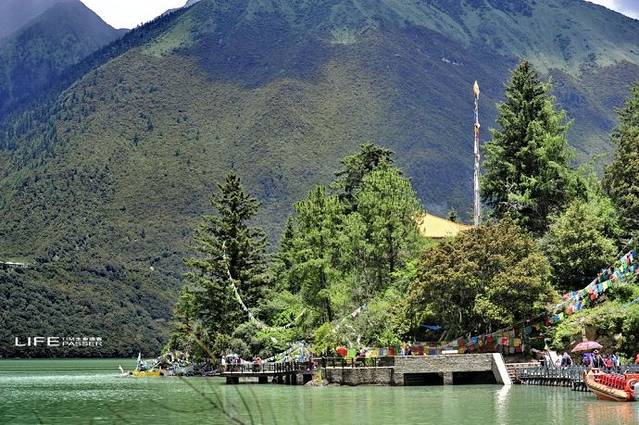 【巴松错】又名错高湖,藏语中是“绿色的水”的意思,位于距西藏林芝地区工布江达县50多千米的巴河上游的高峡深谷里,是红教的一处著名神湖和圣地。巴松措景区集雪山、湖泊、森林、瀑布牧场、文物古迹、名胜古刹为一体,景色殊异,四时不同,名类野生珍稀植物汇集,实为人间天堂,有“小瑞士”美誉。距岸边大约一百米处有一座小岛名为扎西岛,传说该岛是“空心岛”,即岛与湖底是不相连而漂浮在湖水上的。小岛上有唐代的建筑“错宗工巴寺”,是西藏有名的红教宁 巴松措玛派寺庙,建于唐代末年,距今已有1500多年的历史了。错宗寺为土木结构,上下两层,殿内主供莲花生、千手观音和金童玉女。(资料源自网络综合)