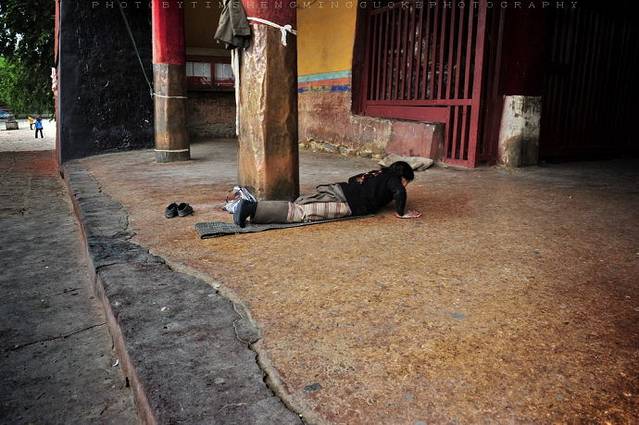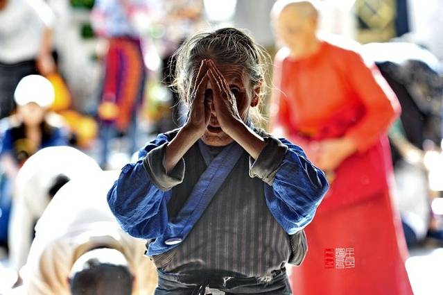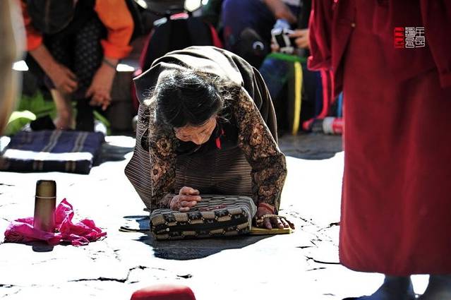 在佛的面前,脱去鞋子,跪伏下去,五体投地。