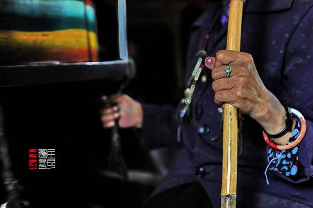 她们右手捏着佛珠握着小转经筒,左手推动咕噜咕噜作响的大转经筒,嘴里还念叨着经文,一遍又一遍,一圈又一圈。