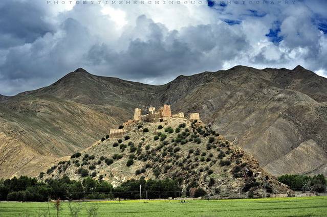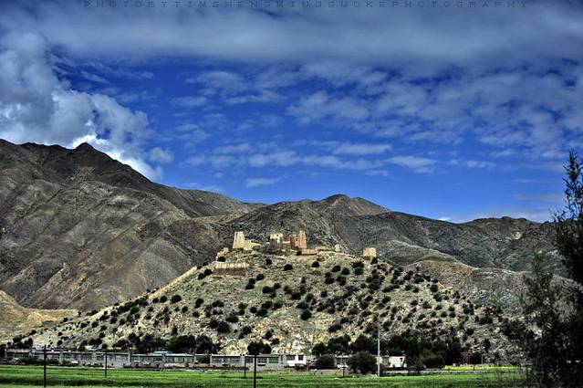 车出城外,远眺宗山古堡,在乌云密布的高原天空下,显得那么的苍凉、凝重。