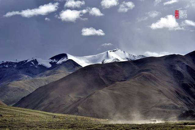 在雪山脚下山谷里的蜿蜒小道上行驶,特别考验车技和耐力,偶有越野车出现扬起漫天的灰尘,瞬间就消失在层层叠叠厚重的峡谷里。