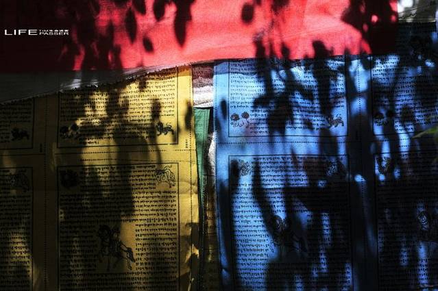 树影婆娑间的风马旗