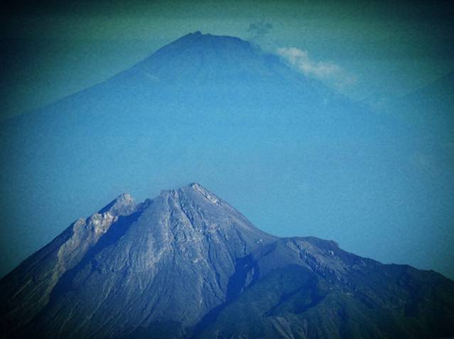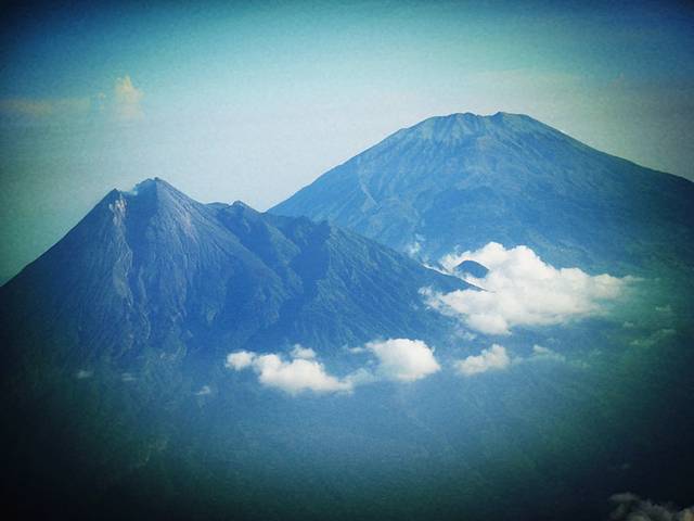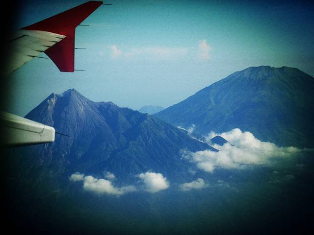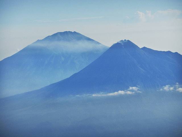 飞机起飞后眼前出现好几个高大的火山,第一次近距离看到这样的火山 ,感觉有些震撼呢。