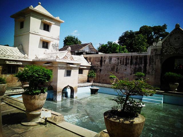 日惹苏丹的王宫。这是一座已有近250年历史的故宫,位于日惹市中心, 该故宫的独特之处是,印尼独立后政府允许原王族一家继续住在宫内,宫中所用仆人仍着古时服装。整座王宫是伊斯兰文化和爪哇文化的混合体,又具欧洲风格。宫里的清真寺、四面通透的中国亭台式的发呆屋、刻礼器等。多种文化在近代日惹的冲突和融合,在日惹王宫可窥一斑。