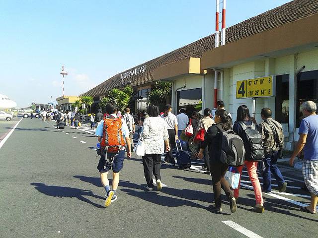 到达日惹,机场很小,下机后步行出机场。