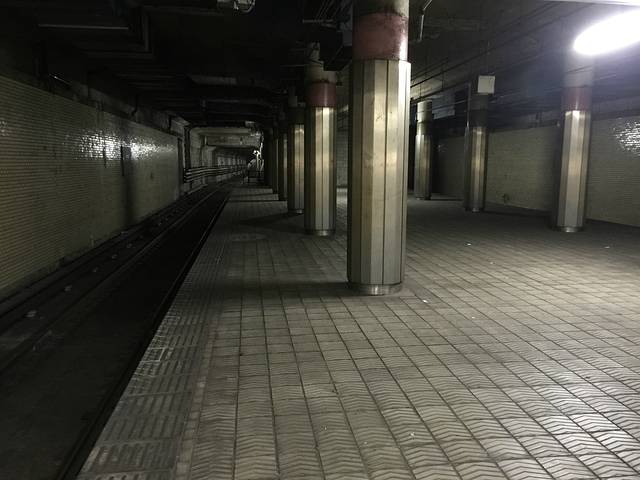回去的时候,等地铁入站。是因为时间已经比较晚的缘故??候车室很少人,而且气氛也很恐怖。。。。。那边,看不到尽头的隧道仿佛可以把一切都吸进去。。。こわい~~