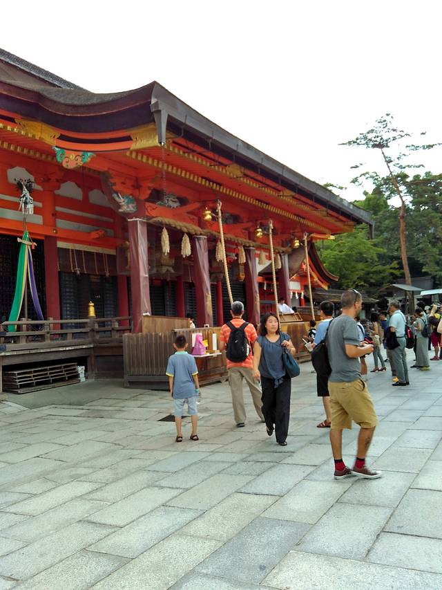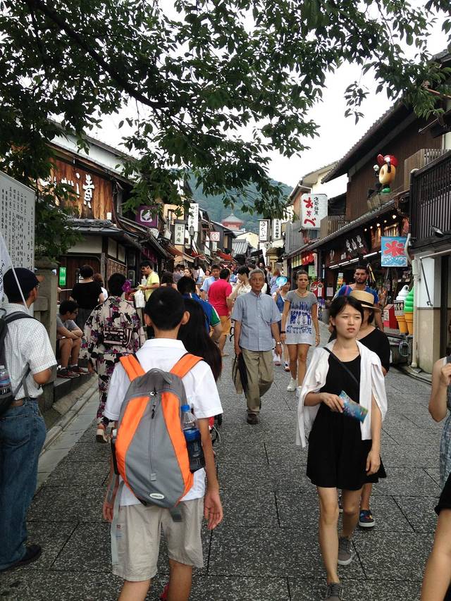 传统的古建筑物,想感叹一句就是保养的很好。。。。路上有些传统和式果子店,就是那种店外有个长凳上面撑把红伞。然后卖些宇治金时,团子什么的。可是,没有进去啊。开始那几天一直喉咙痛,为往后几天着想,只能放弃了。下次一定去试一下。
