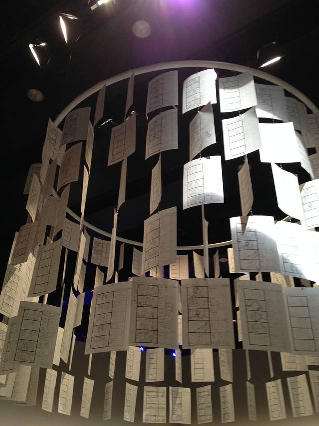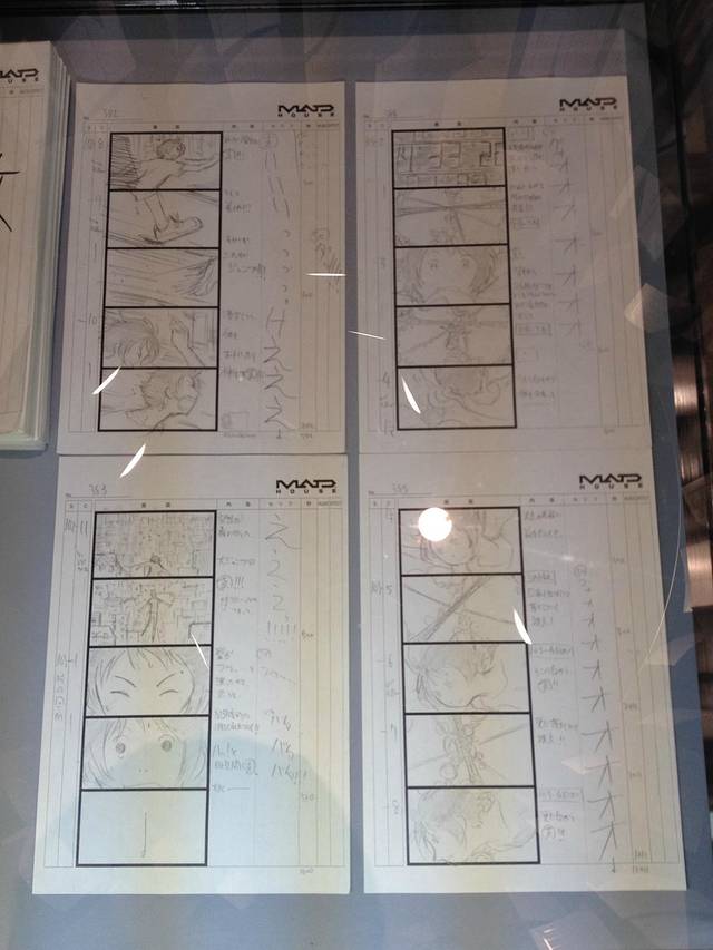 二楼是我最喜款的地方,有吉卜力制造的动画的各种美术资料展示。。。。我认为应该不是全部原稿吧,有些复制原画。但这些资料都是外面所看不见的!整面墙的水彩美术board。。好漂亮啊啊。。。。铅笔的人物设定好赞。。机械设施好仔细啊。。。宫老的分镜头真的都上色了。。。。原画的那些阴影那些线条好流畅啊啊。。。我就是这样一边感叹一边沉浸在那个空间中。。继续走进去,发现有手绘动画制作讲解!!!!!!可惜我还不能看懂。。。#(┬_┬)泣。。啊啊啊,有原画师的工作台!!纳尼,还能上去透过透写台自己动手翻原画!!!!居然还有赛璐珞动画时代的模板!!和老式的后期摄影机!!可以自己去上去玩。。。以前做动画真心不容易。。。。。在这里逗留的时间几乎最久。。。。。二楼另一边是一些漫画原稿展示。。。由于不知道是什么漫画加上自身日语文字阅读能力有限就只能放弃了。