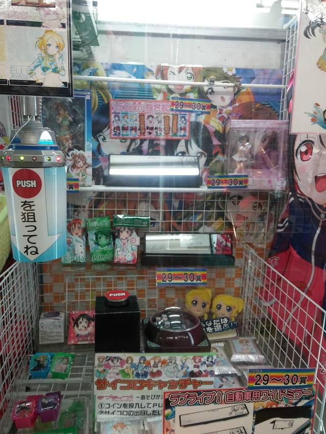 game center。。。。绝对是一个让你挣扎地出来后,又十分挣扎地想回去的地方。。。。有很多抓娃娃机,但里面不一定是娃娃,可能是手办,海报,浴巾,T恤,储钱罐。。。。。而且,摆放奖品位置之微妙是很多人所始料未及的。。。。。。每一次。。每一次。眼看着它就快要掉下去的时候,它又以违背重力学的神奇运动,回到原位置(牛顿都快要哭倒在厕所里面了。。。。)。但是就是这么微妙的位置,会让你产生一种下次应该就能拿到的错觉。而当你已经在这上面花掉许多钱的时候,你又会觉得这时候退出太可惜。便不肯离开,继续在里面氪氪氪氪。。。。。。。