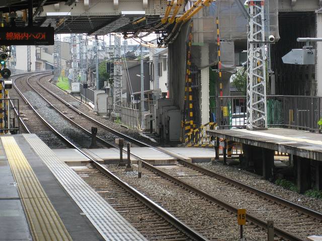 よし、坐在电车上便开始东张西望,日式房屋,电车通过时的栏杆,河岸边的斜坡,巨大的广告牌,电线杆。这一切在我眼中都是那麽的吸引我的眼球。