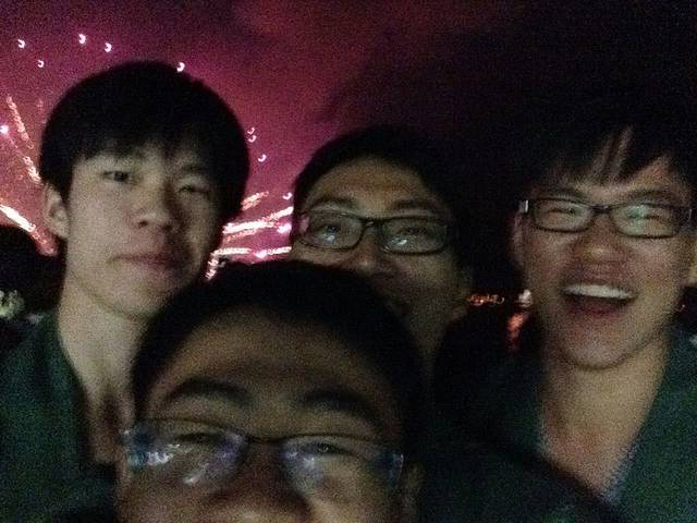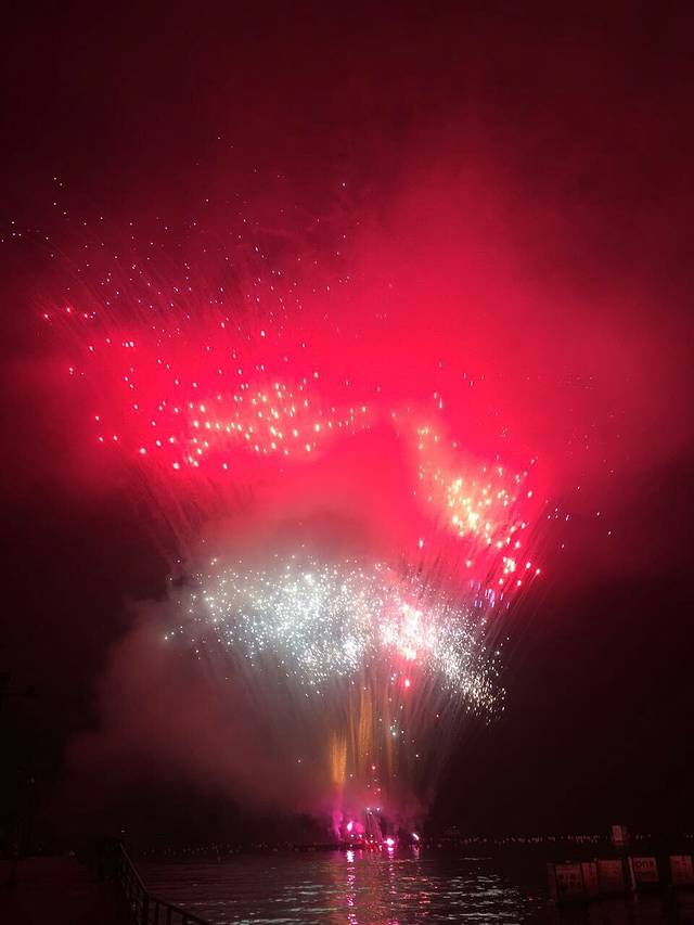 烟花真的好漂亮,唯一美中不足的就是,往旁边一瞄是男人。往前面一看都是cp啊啊。。。算了,就不计较那么多了,还是静静地看着烟花吧。烟花种类好多,颜色形状也各异。印象最深的还是那个像流星一样,先在空中散开,再慢慢拖着光芒滑落。灯笼飘在湖上好漂亮すてき。只可惜,曾经进水手机摄像头+自己的渣技术完全体现不出来。。。