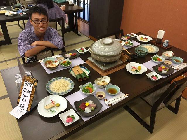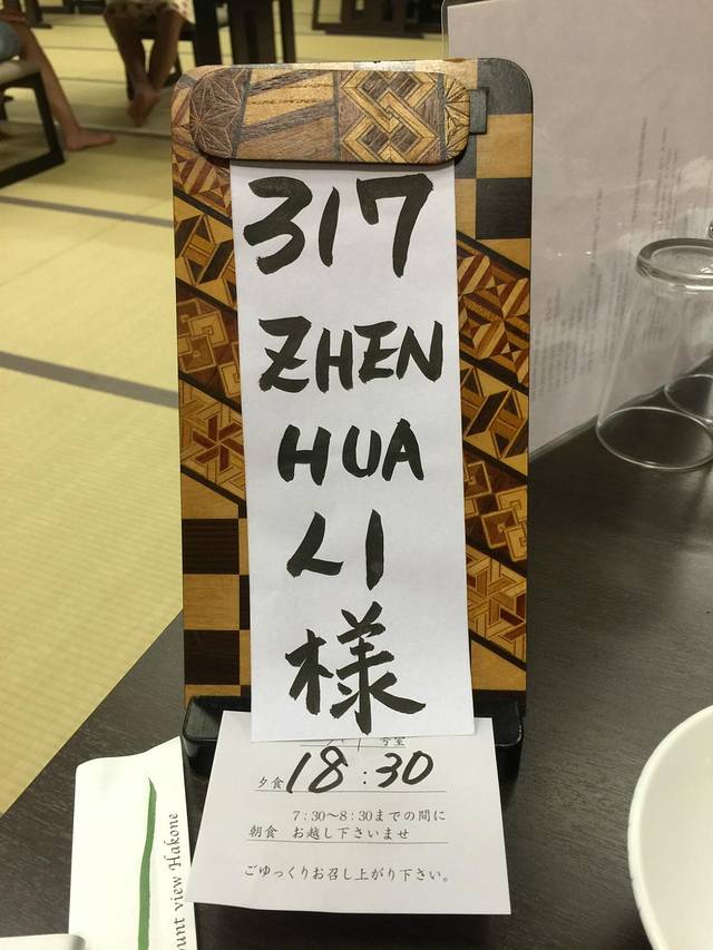 旅馆的早晚餐都好丰盛啊啊,吃了那么多天的便利店便当,感觉都是值得的了。而且每种菜都用不同的器皿乘,都很小巧精致,舍不得吃了。。。。。。因为是我负责订房预留了信息,所以台面上有LI ZHENHUA様的字样呢。。。(≧∇≦)b(≧∇≦)b