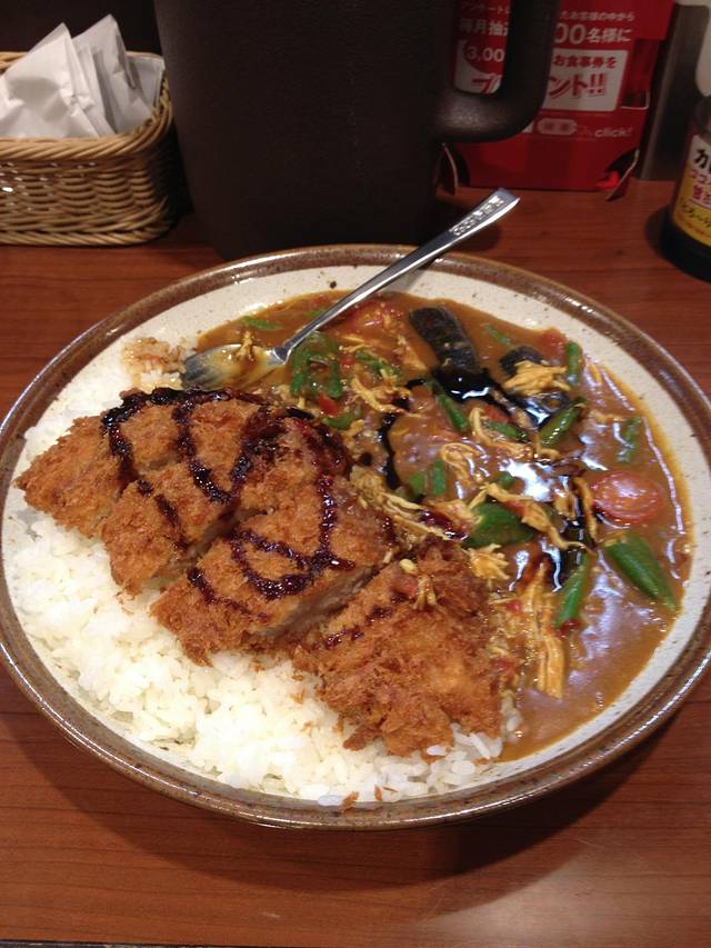 CoCo壹番屋的咖喱,感觉菜量太足了,饭不够。不知道能不能加饭。。不小心点了个辣的,不太合我当时的胃口。。但炸猪排还是挺好吃的!