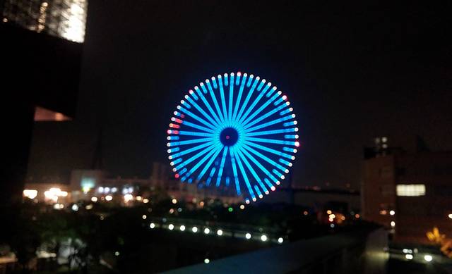 这张是刚看完巨人后出来照的,已经快要9点了,还没吃饭。。。。。。。后面那个巨大的多啦A梦亮了。。