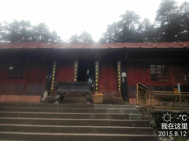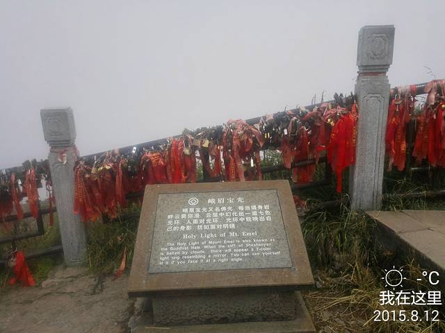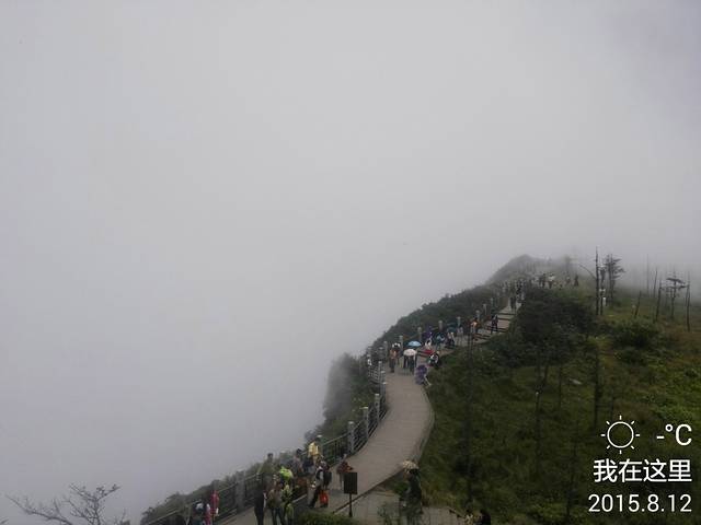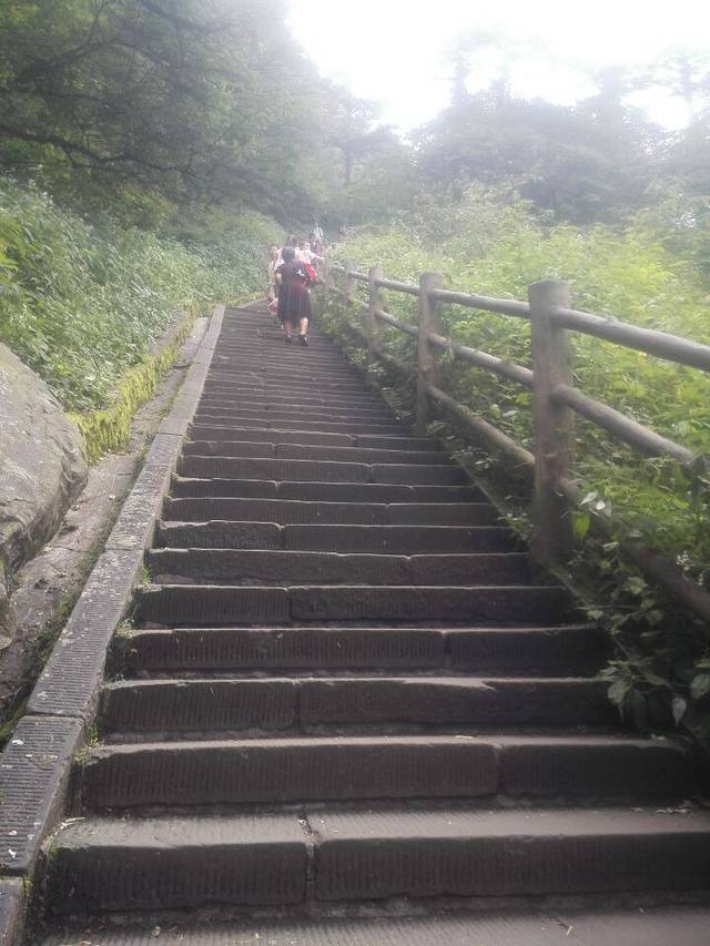 说到现在还有一个重要的东西没有交代,那就是到现在为止我没有说吃饭的事,我可是一直玩了金顶以后才吃的(自带自营)。吃的时候想等大太阳出来的,可是雾太大太厚,只有隐约光影,就不再继续等了,就这样也到了14:35时了,好,继续学习——下山,下到雷坪洞车站15:28,怎么不相信自己,下山那么快,就比上山少30分钟!!!计划坐去万年寺的车,可是下山的车又要在上山时的斜对面停车(车又加水,人又放水),司机说一个半小时能下到山下,可是到了万年寺已快17:00时了(我都没有精力记时间了),想想也玩不动了(主要是爬金顶太费精力和体力了),继续坐车下到游客中心,已快五点半了,人也乏了,先吃口面吧,吃完就急着赶高铁(18:22时的)回成都了。