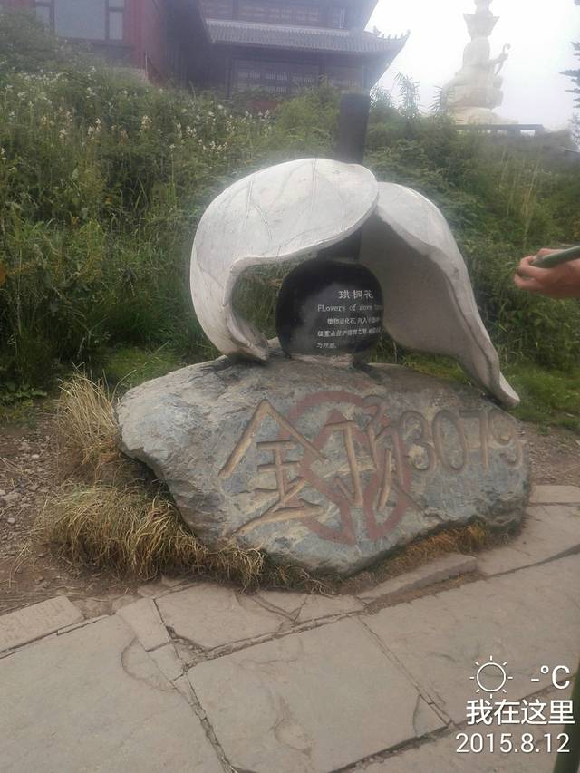 坐成都最早快铁(7:31时出发,8:54时到达),快铁口转乘公交(随时等候),9:20时左右到达峨眉山游客中心,买门票、车票(两个窗口分开买。若是网上购票,好像不能在峨眉山游客中心取票,必须到黄湾去取,峨眉山游客中心也可以售票机购买,显示黄湾,不知道是否从黄湾坐车)。排队等车(今天人那个多呀,都排到游客中心大门外公路边了)。10:00坐上旅游车,花2:20小时到雷洞坪(中间车要加水,人要放水)。指示牌提示到金顶6km(实际:雷洞坪停车场至索道1km,再到太子坪1.3km、再到索道终点1.1km,最终到金顶0.4km,总共3.8km)。然后就是今天的主题的——我是徒步爬山的(是那种连滚带爬、连跑带跳的那种)。全力消费精力和体力,向金顶进军。本人爬到接引殿索道用时20分钟(海拔2540m,中徒拜大雄宝殿、弥乐宝殿),到达太子坪时间是13:15时(已爬55分钟,拜太子坪庙),再到索道终点13:35时(用时1:15分钟)。最终到达金顶脚下时间是13:43时(用时1:23时)。来呀,看谁能打破我的记录。爬山太费体力了,克服约500m高差(从停车场哈)平均坡度13%,有一段坡度达到120度(有图为证!!!)。亲们,看你们的了。