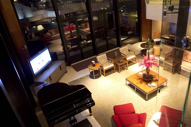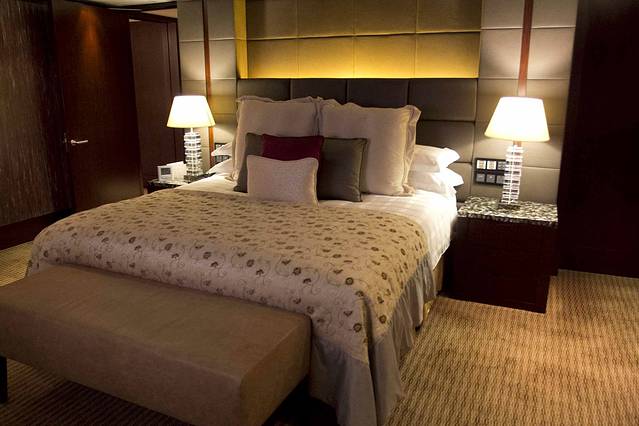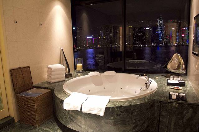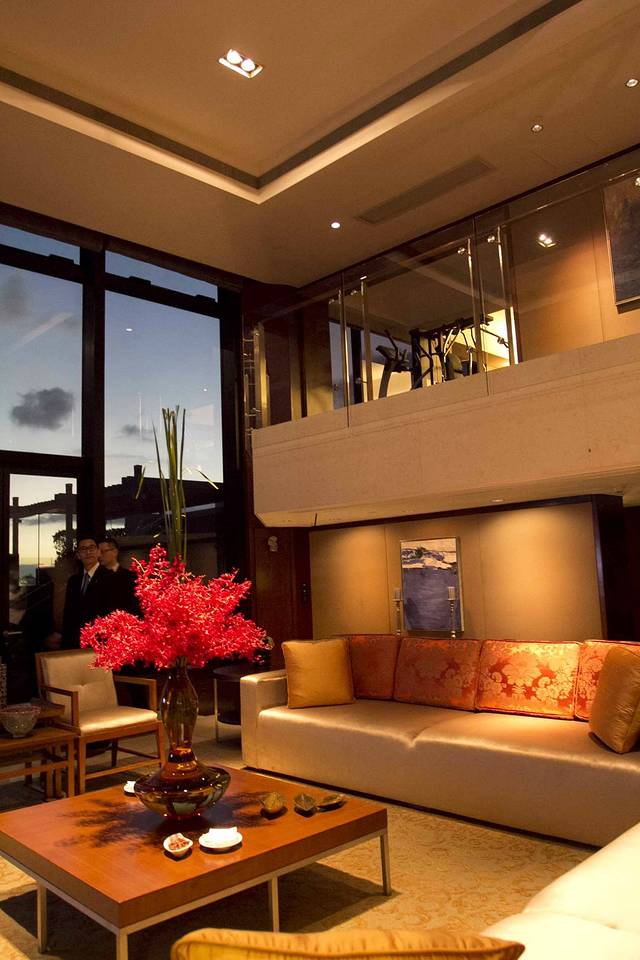 有幸参观香港洲际酒店的总统套房,面积超过700多平米,高两层的大堂、五间睡房、客厅、饭厅、厨房、健身室以及250平方米平台花园,还有无边界户外按摩池。
