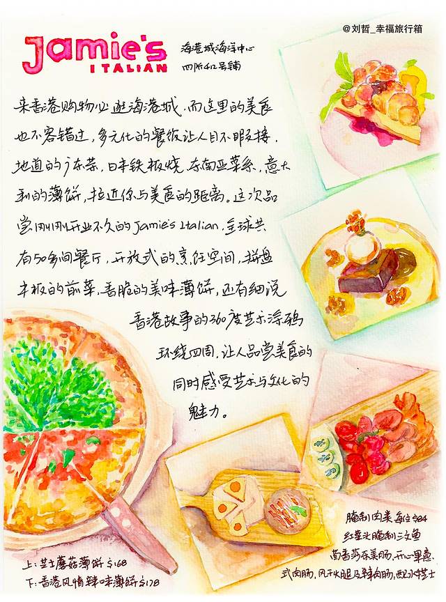 来香港购物必逛海港城,而这里的美食也不容错过,多元化的餐饮让人目不暇接,地道广东茶、日本铁板烧、东南亚菜系、意大利的薄饼,拉近你与美食的距离。这次选择刚刚开业不久的Jamie’s Italian,全球共有50多间餐厅,开放式的烹饪空间,拼盘木板的前菜,香脆的美味薄饼,还有细说香港故事的360度艺术涂鸦环绕四周,让人在品尝美食的同时感受艺术与文化的魅力。