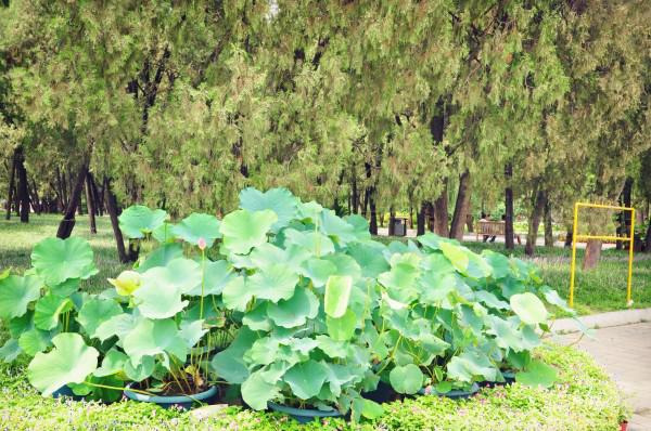 养生园,里面许多的中医药草跟中医文化。里面是按照金木水火土五行排列的方阵。