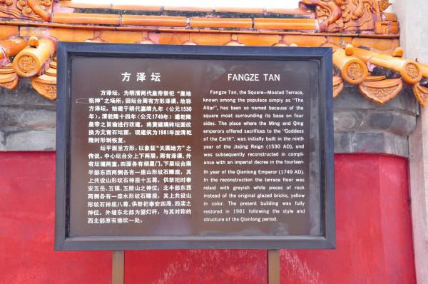 方泽坛,明清两代皇帝祭祀的场所,就是皇帝祈求风调雨顺,国泰民安之类的。呈方形,象征“天圆地方”。