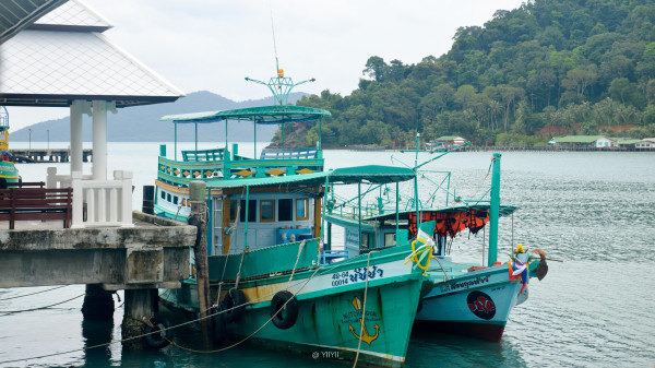 在象岛大半时间都是阴天,如果是晴天这里会不会更美?就连去曼谷的时候,坐船出去都还刮大风下大雨,冷死了。坐船到对岸就是车站,有直接去考山路的车,坐了一整天的车。进曼谷市区的时候,发现这里的车特别有秩序,而且很少有人按喇叭,几乎听不到喇叭的声音,也很少有超车的。