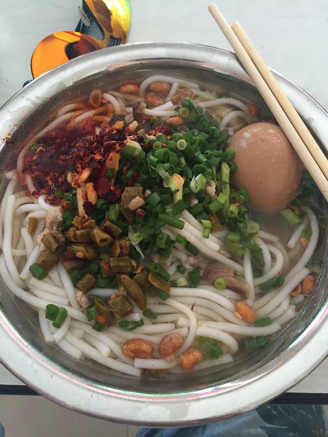 从七星公园出来后,随便找了一家米粉店吃了吃,都说桂林米粉好吃,但是如果吃不习惯的话,真的是很难受的,它是那种干拌粉,酸豆角,葱花之类的需要自己放,如果你不想吃干粉,你可以让他们提前给你加汤,但是个人感觉加了汤的桂林米粉就失去了它本来应有的味道,不过这一小吃倒不贵,三两的也只卖4.5一碗,而且吃正宗的桂林米粉一定要到那种门脸很小很破的小店去吃,味道才够正宗。