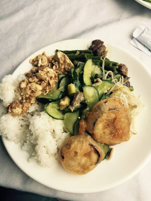 这是桂林米粉,第一口吃实在吃不下,让他们加了汤